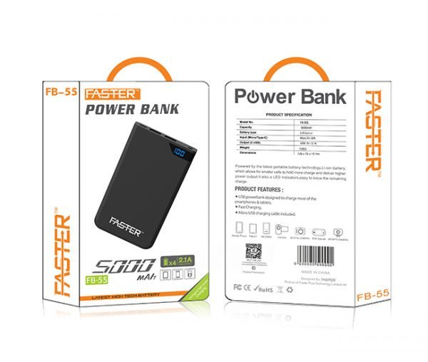 Stay charged. Stay Faster. With the Faster FB-55 power bank, never let your devices run out of juice again!