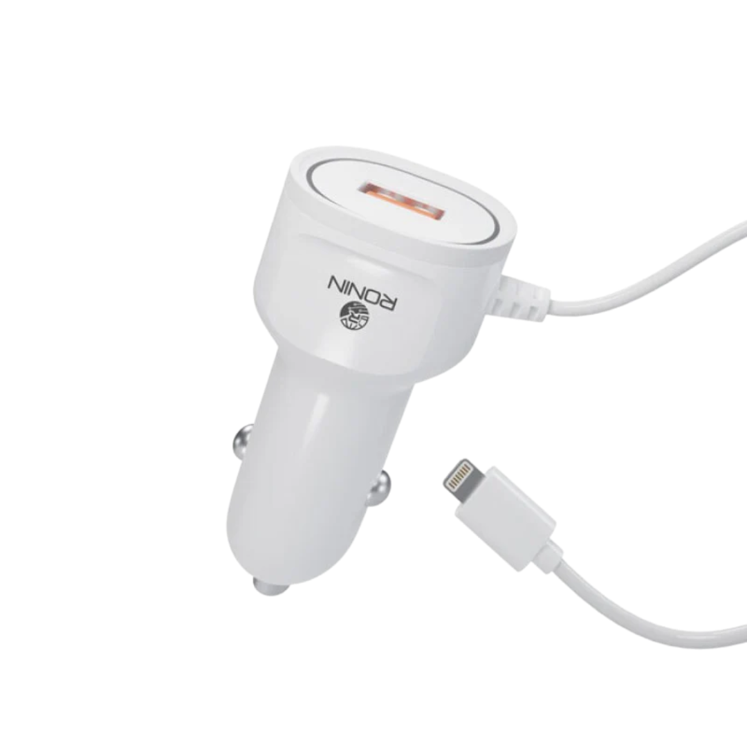 The Ronin R-545 2.4A Car Charger is a sleek and compact charging solution for your car. Its advanced tech provides surge protection and temperature control, ensuring safe and efficient charging. With easy dashboard access and compatibility with multiple cable types, this charger is designed for convenience.